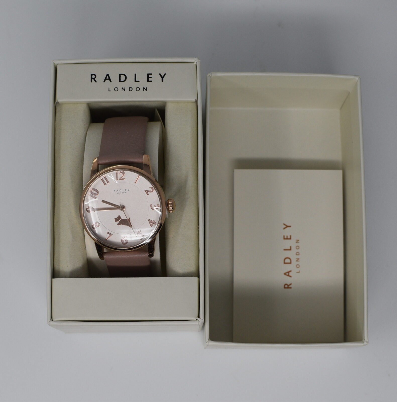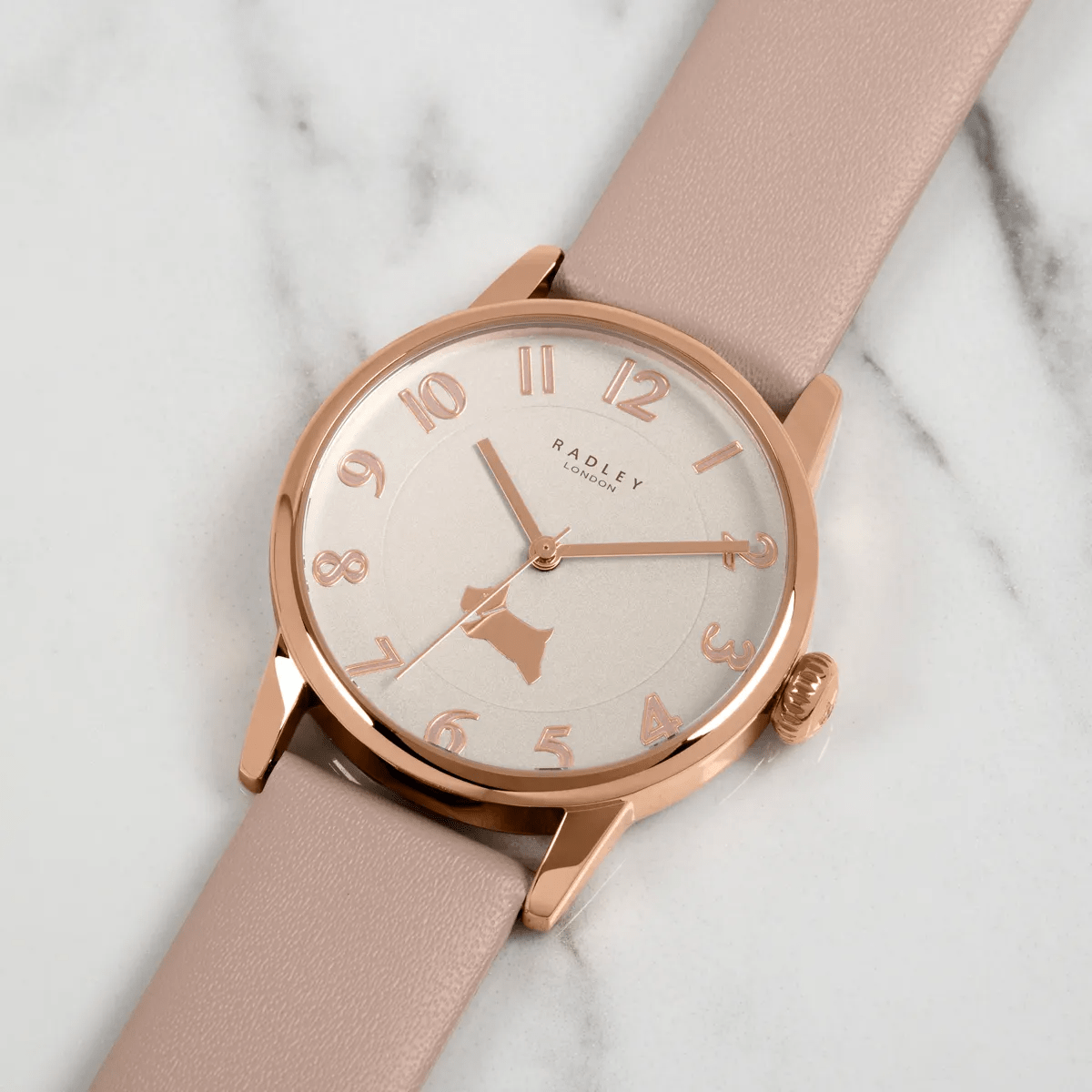 The Radley Ladies Watch Liverpool Street RY21394A is a stylish and sophisticated timepiece that exudes elegance and femininity. Featuring a blush pink leather strap and a rose gold-tone stainless steel case, this watch is perfect for adding a touch of sophistication to any outfit. The dial is accented with rose gold-tone markers, hands, and the iconic Radley dog logo, adding a subtle touch of luxury. Whether you’re dressing up for a special occasion or simply running errands, this watch is sure to turn heads. Sharing its name with Radley bestselling handbag style, the Liverpool Street watch is a must-have for any Radley London fan. Crafted with a rose gold-plated case, Quartz movement and a leather strap, it’s a timepiece you can rely on.