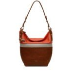 - Radley ‘Kensal Stripe’ Cross body Shoulder bag in smooth Brown leather with orange and cream detailing
