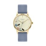 Details: Radley Ladies Hamilton Gold watch with a Painterly Floral printed dial and a Shark blue Genuine Leather strap. Includes gift box and guarantee.