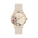 Details: Radley Ladies Rose Gold Case watch with a Botanical floral printed dial and a Oyster coloured Genuine Leather strap. Includes gift box and guarantee.