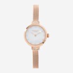 Radley Aspley Road Ladies gold mesh bracelet watch. Featuring a rose gold plated round case with stone set shoulders, mother of pearl dial and a rose gold mesh bracelet. Includes Radley gift box and 2 year guarantee.