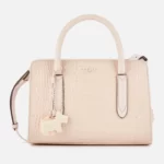 Radley hand bag made from leather. Realised in a light pink colourway, the bag has a croc texture and glossy finish. Grab handles to the top along with an adjustable, detachable strap for versatile wear. Zip top compartment lined with grosgrain fabric and split into three sections. Internal zip and slip pockets. Additional slip pocket to the rear. Complete with foil logo to the front as well as a dog charm.
