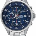 The Seiko Neo Sports is an analog watch designed for men. It has a stainless steel case and bracelet strap paired with a blue dial. The numbering, indices, and watch hands are in contrasting colour for easy visibility. This men?s watch is water resistant up to a depth of 100 metres.