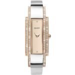 The SEKSY 2736 ladies watch has a beautiful rectangular style steel/rose gold tone case, Swarovski crystal encrusted bezel with metal bracelet & clasp