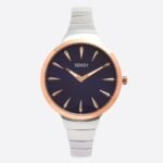 Ladies’ stylish rose gold plated case wristwatch. Features a blue dial with Swarovski crystals set on each rose gold tone hour markers.
