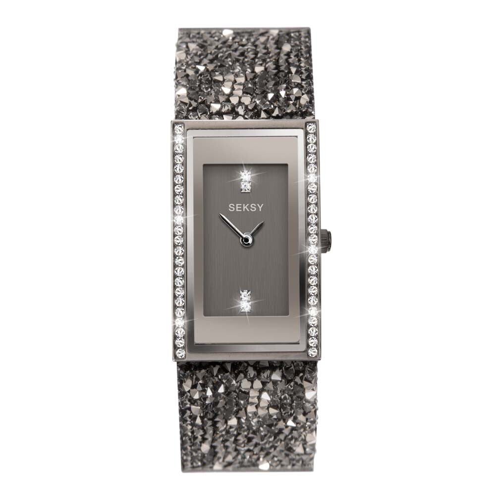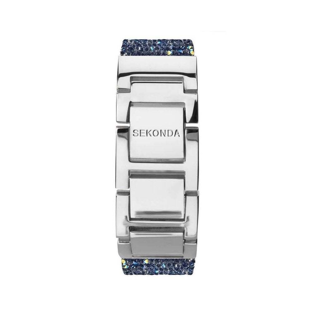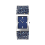 Seksy by Sekonda 2758 ladies watch from the Rocks collection has a rectangle polished rhodium plated case with a stainless steel case back and a blue colour dial.