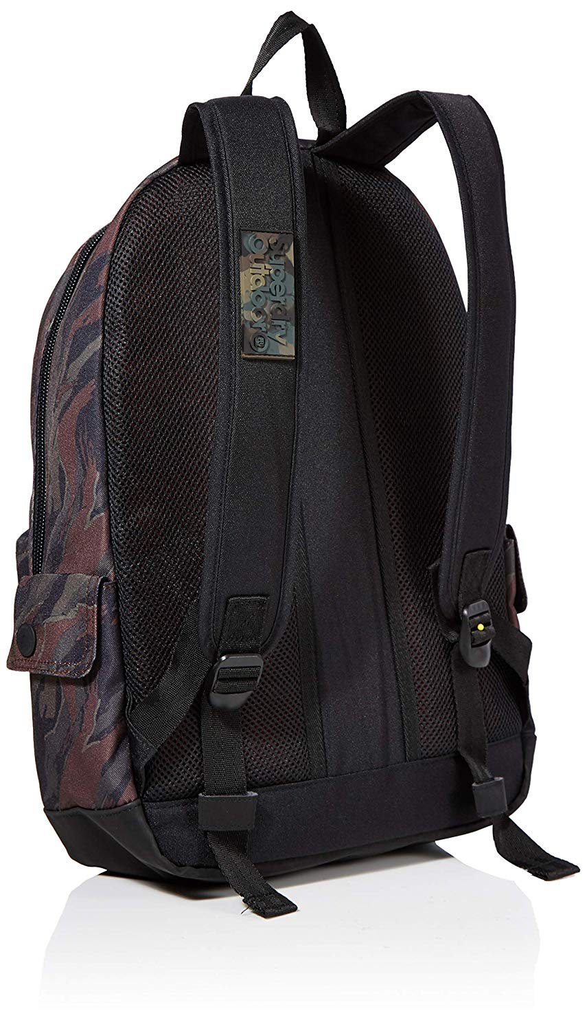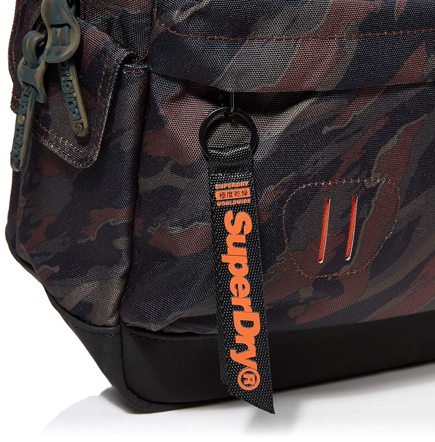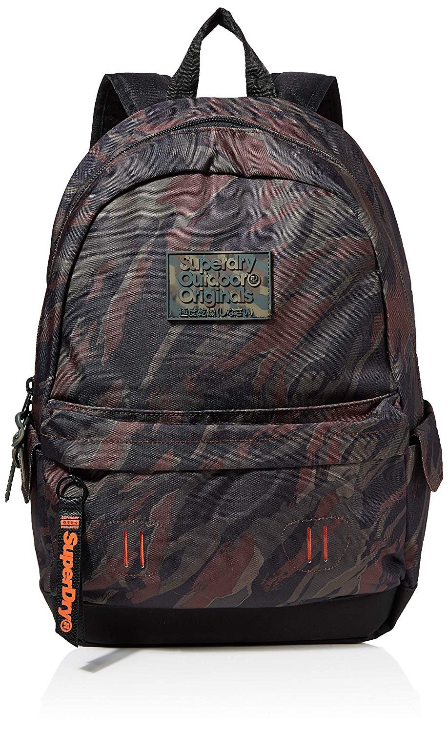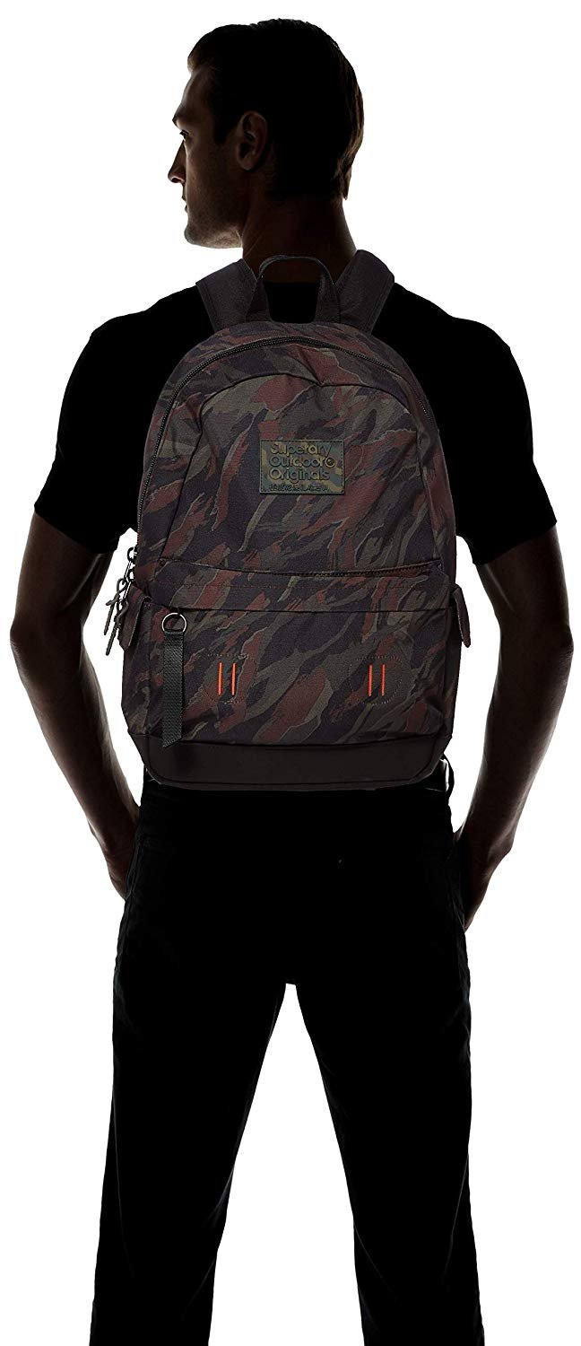 Superdry men’s Disruptive Camo Montana rucksack. This classically styled rucksack in a camo print fabric features a large zip fastened main compartment, a top grab handle and padded back and straps. This rucksack also features an outer zip fastened compartment and two side pockets with popper fastenings. The rucksack is finished with silicone logo badges on the main compartment and on one strap.