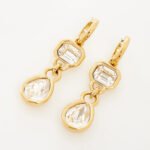 Make a strong style statement with these sculptural pierced earrings from the Dextera family. Each gold-tone plated piece features two bezel-set crystals crafted in pear- and octagon-cut crystals connected by a delicate link. Pair these boldly chic earrings with a matching pendant for a striking look.