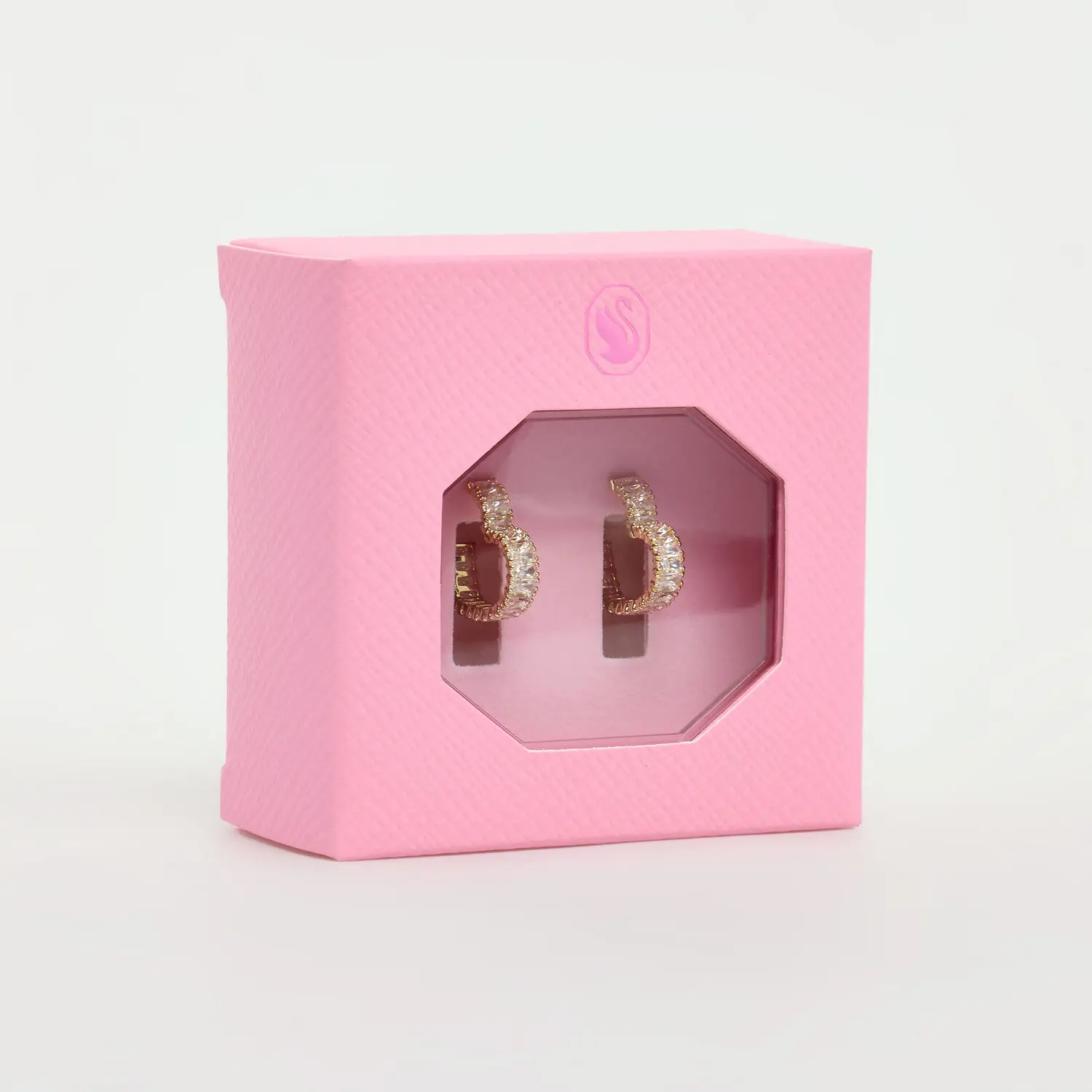 Fall in love with these romantic Swarovski Matrix Gold Tone Heart Hoop Earrings (5701599). Crafted with 18k gold plating, these heart-shaped hoops shimmer with a full set of clear baguette-cut Swarovski Zirconia, catching the light from every angle. A perfect fusion of modern elegance and timeless romance, these earrings elevate any look — from casual chic to evening glamour. Ideal as a gift of love or a statement addition to your jewellery collection.