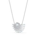 Refined opulence tempered by timeless elegance defines this resplendent Swarovski necklace. A white dancing stone is its highlight, with rays of gleaming white stones and clear crystals in different sizes radiating out from it, adding their own sparkle to its gleam. The necklace closes with a lobster clasp. Its timeless design combines perfectly with matching pieces of jewellery to create a radiant ensemble for special occasions.