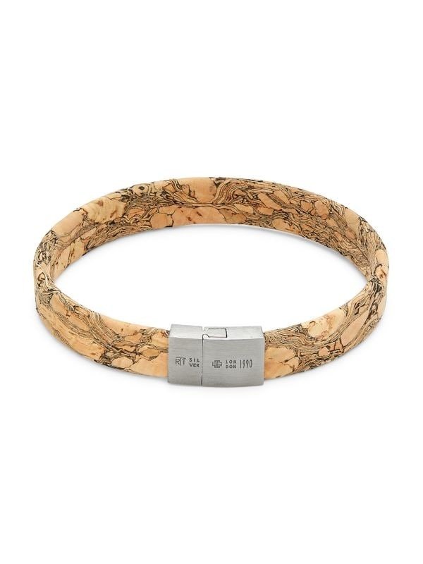 A firm favourite for the environmentally conscious and style-forward individual, this Tateossian Brown Natural Cork Bracelet combines innovative materials with refined British craftsmanship. Crafted from natural cork, one of the world’s most sustainable materials, this bracelet features a distinctive textured finish that offers a bold yet understated aesthetic. Finished with sterling silver hardware and a smooth slider clasp, it provides both comfort and contemporary appeal. Designed and made in the UK, this bracelet is perfect for those who appreciate luxury with purpose. Supplied boxed, making it ideal for gifting. Key highlights: Sustainable natural cork construction, Sterling silver hardware for a premium finish, Adjustable slider clasp for secure wear Lightweight, durable, and comfortable Fashion-forward eco-luxury design