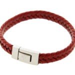 Braided leather band Branded clasp fastening Bracelet Length: 18cm Leather Boxed