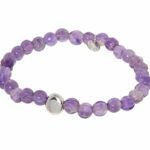 Adorn your wrist with this charming beaded bracelet. In purple, it features silver accents and an elasticated band. 17.5cm circumference, medium size. 925 SilverBead size: 6mmWidth: 9cmBoxed