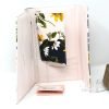 Branding, floral print, rear slip pocket,four slip pockets, zip pocket, four card slots, passport holder, foiled lettering
