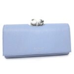 This slim and stylish Louetta matinee purse from Ted Baker has been made from leather and features a coin compartment that secures with a cool marble bobble fastening.