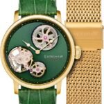 22-20mm Green Genuine Leather Strap and Ionic Plating – Gold Mesh Band