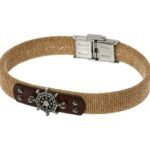 THOMPSON LONDON Brown Canvas & Leather Bracelet Bolster your accessory collection with this charming bracelet, complete with a leather contrast, pendant detail and clip fastening. 100% Textile Contrast: 100% Leather1 x 22cm