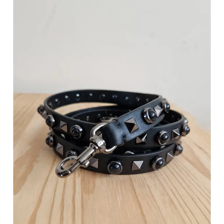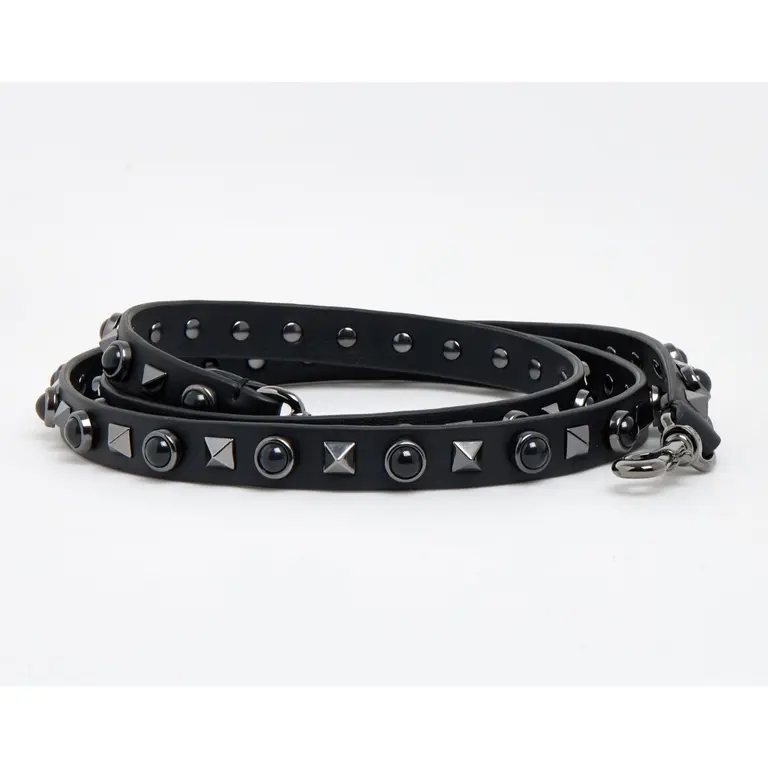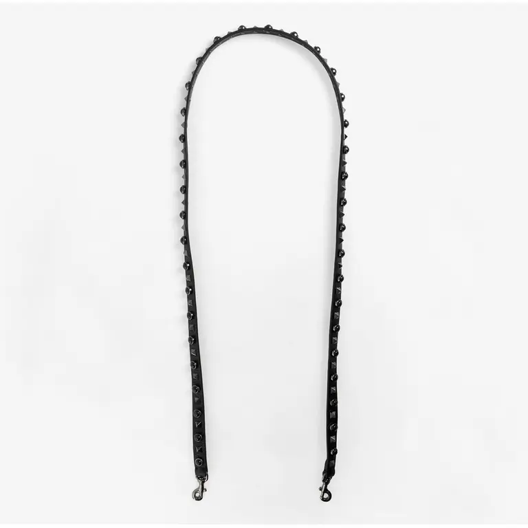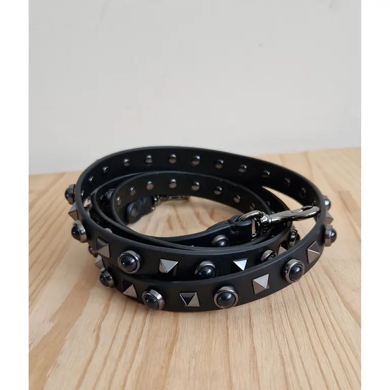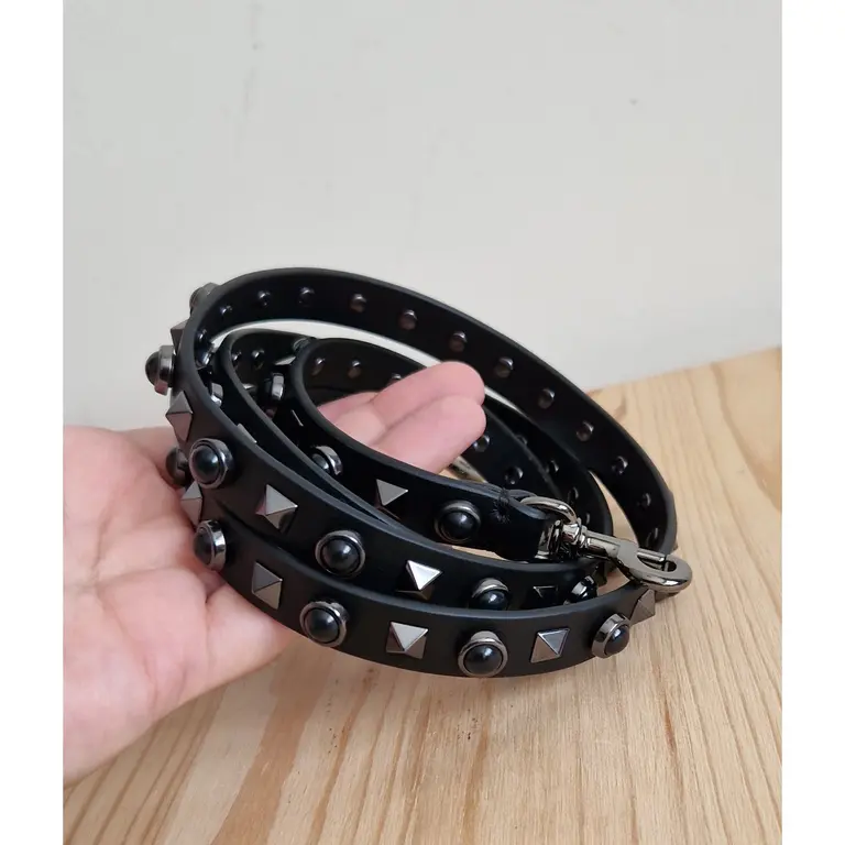 Luxury shoulder/crossbody bag strap by Valentino Garavani, expertly crafted in Italy from premium black grained leather. This statement accessory is embellished with the brand’s iconic Rockstud pyramid studs in dark grey gunmetal tone, complemented by black dome studs for a bold, designer finish. Designed to elevate your favourite handbag, the strap features gunmetal lobster clasp fastenings engraved with Valentino’s signature “V” logo, allowing easy attachment and removal. With a generous 120cm length, it can be worn comfortably as a shoulder or crossbody strap. This is a 100% authentic, brand-new Valentino Garavani item, supplied without tags and dust bag. A perfect luxury upgrade or replacement strap for Valentino bags or compatible designer handbags.