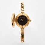 Black dial enhanced by gold-tone hands. Gold-tone stainless steel case with a gold-tone stainless steel band. Quartz movement. 30 meters / 100 feet water resistance. Fixed bezel. Scratch Resistant Sapphire crystal. Solid caseback. Jewelry clasp. Pull / Push crown. Case size 25 mm. Versace VEZ500221 Medusa Secret Watch.