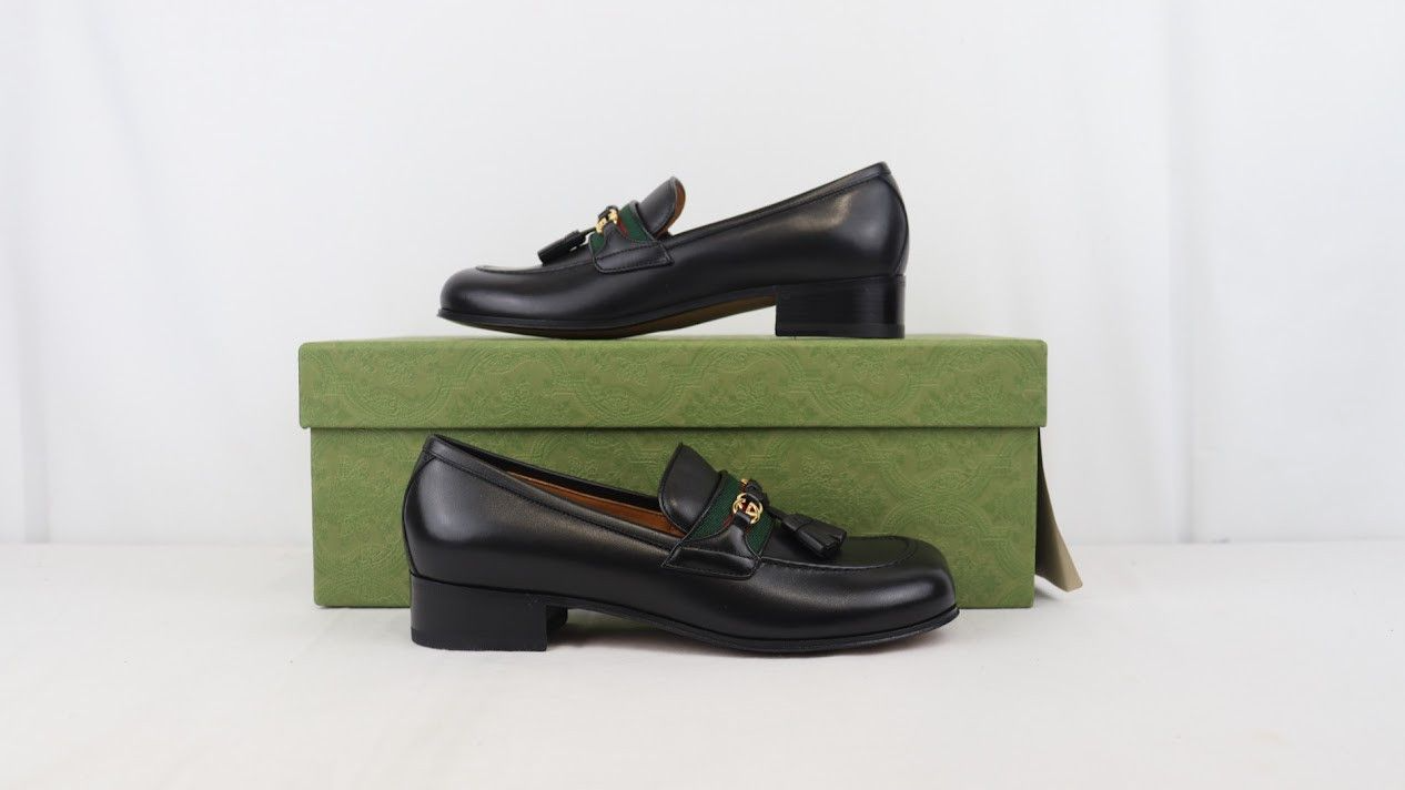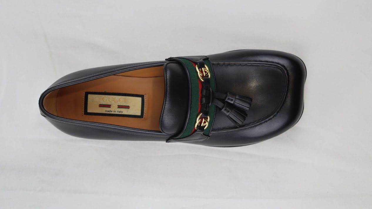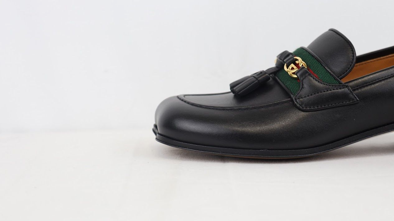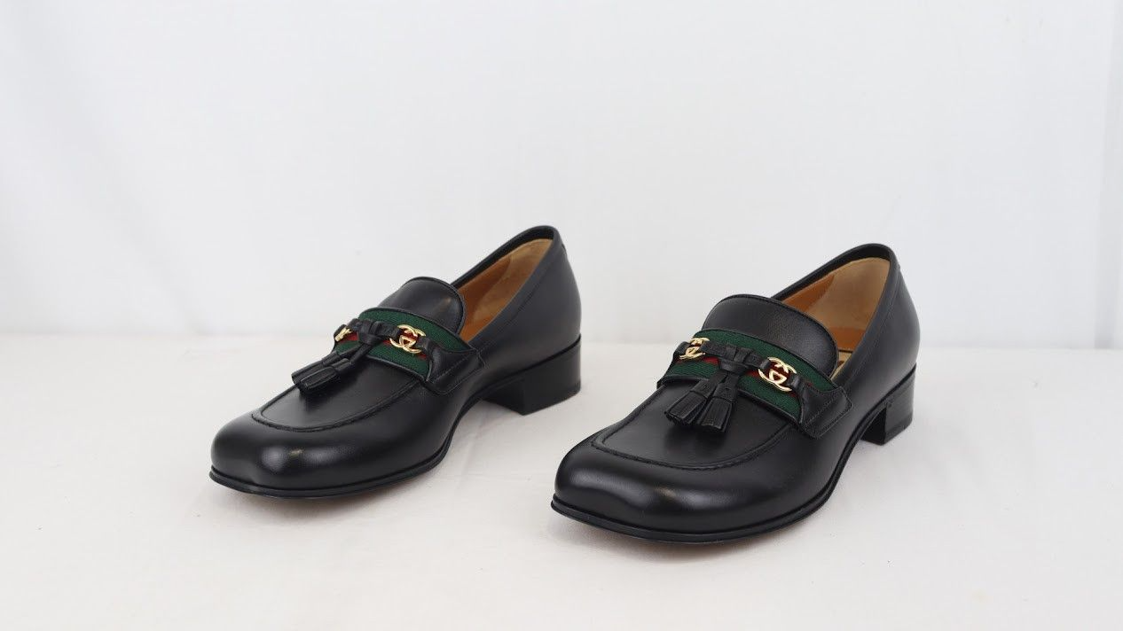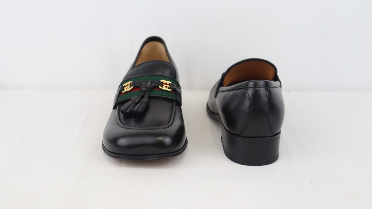 Gucci Interlocking G Tassel Leather Loafers Jakarta UK Size 7 Black Leather 741407